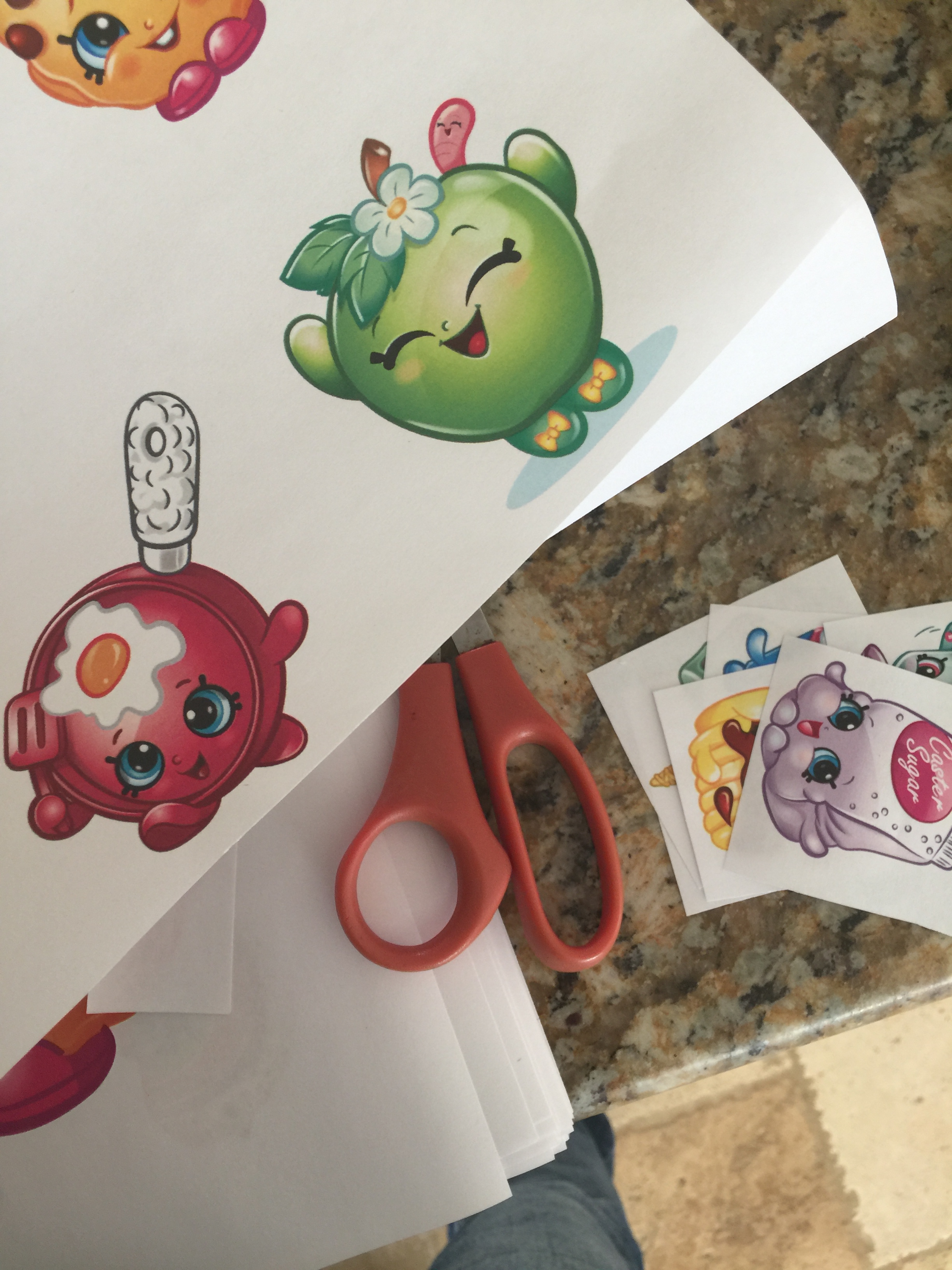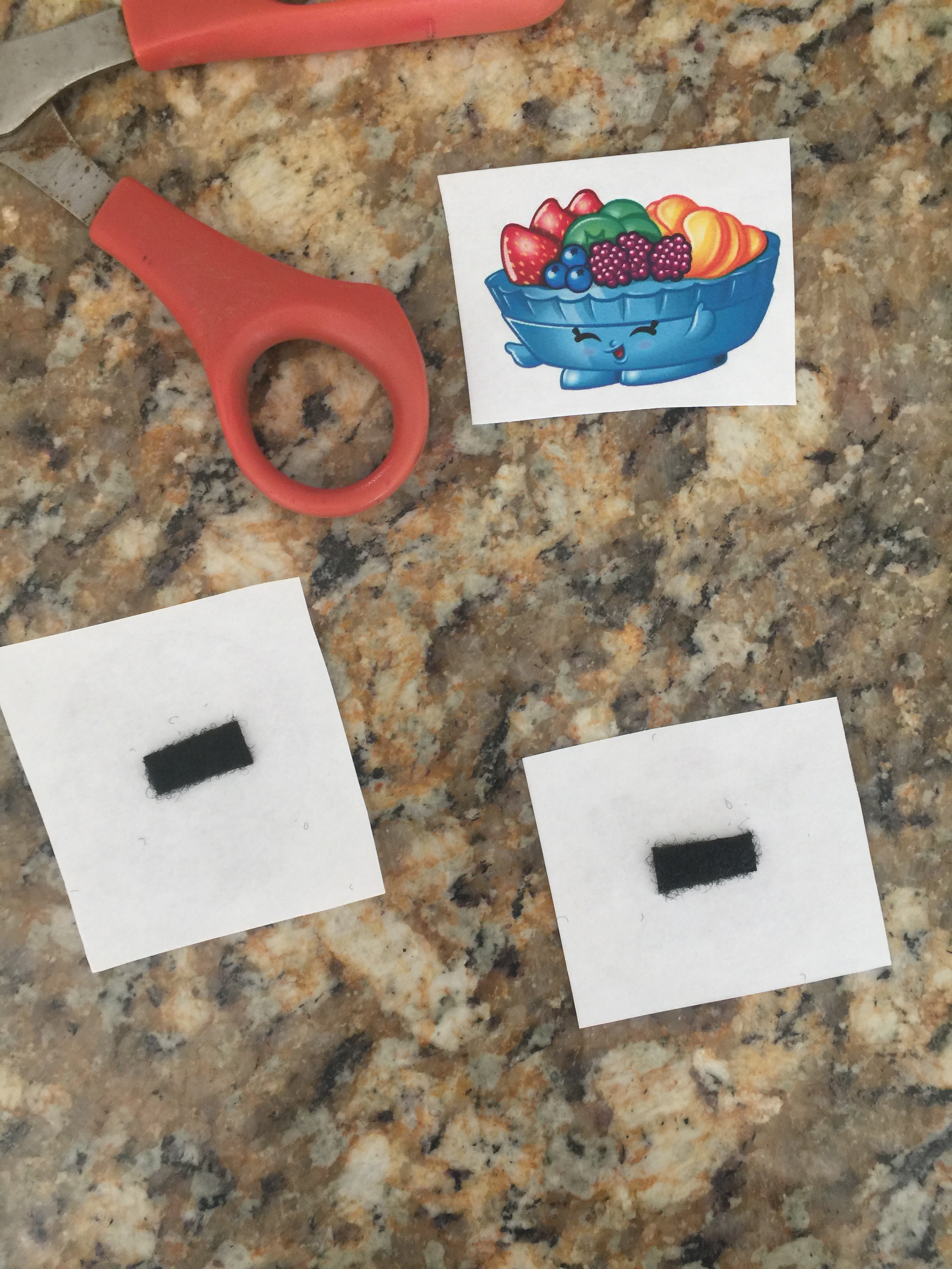 - Cut out the printed Shopkins into squares and apply one side of the velcro to the back.